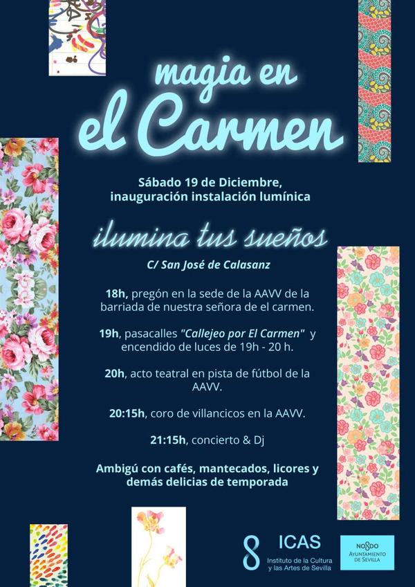 19:00h Pasacalles “Callejeo por El Carmen” de Viento Sur Teatro y encendido luces de 19h-20h