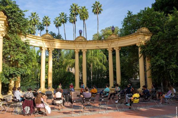 Los jardines del Casino de la Exposición, fueron el escenario del encuentro ‘Paisajes circulares’ la primera de las actividades de la segunda edición de ‘Jardines en el aire’. La jornada congregó a más de medio centenar de creadores, vinculados o interesados en proyectos de renaturalización urban