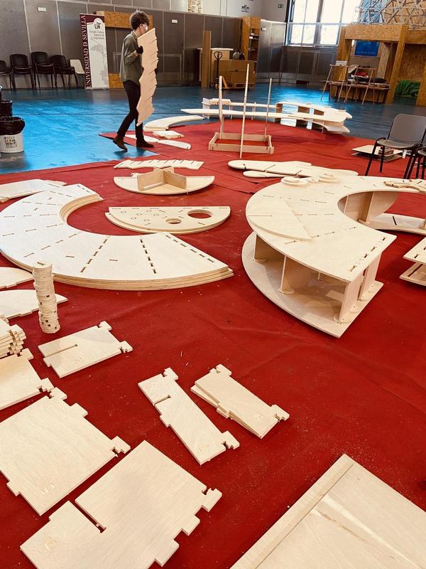 Se había pensado, diseñado y se habían empezado a construir los 20 fragmentos por separado. Guardábamos distribuida por el almacén la idea de este poliedro y entonces lo trasladamos a su hermosa casa.